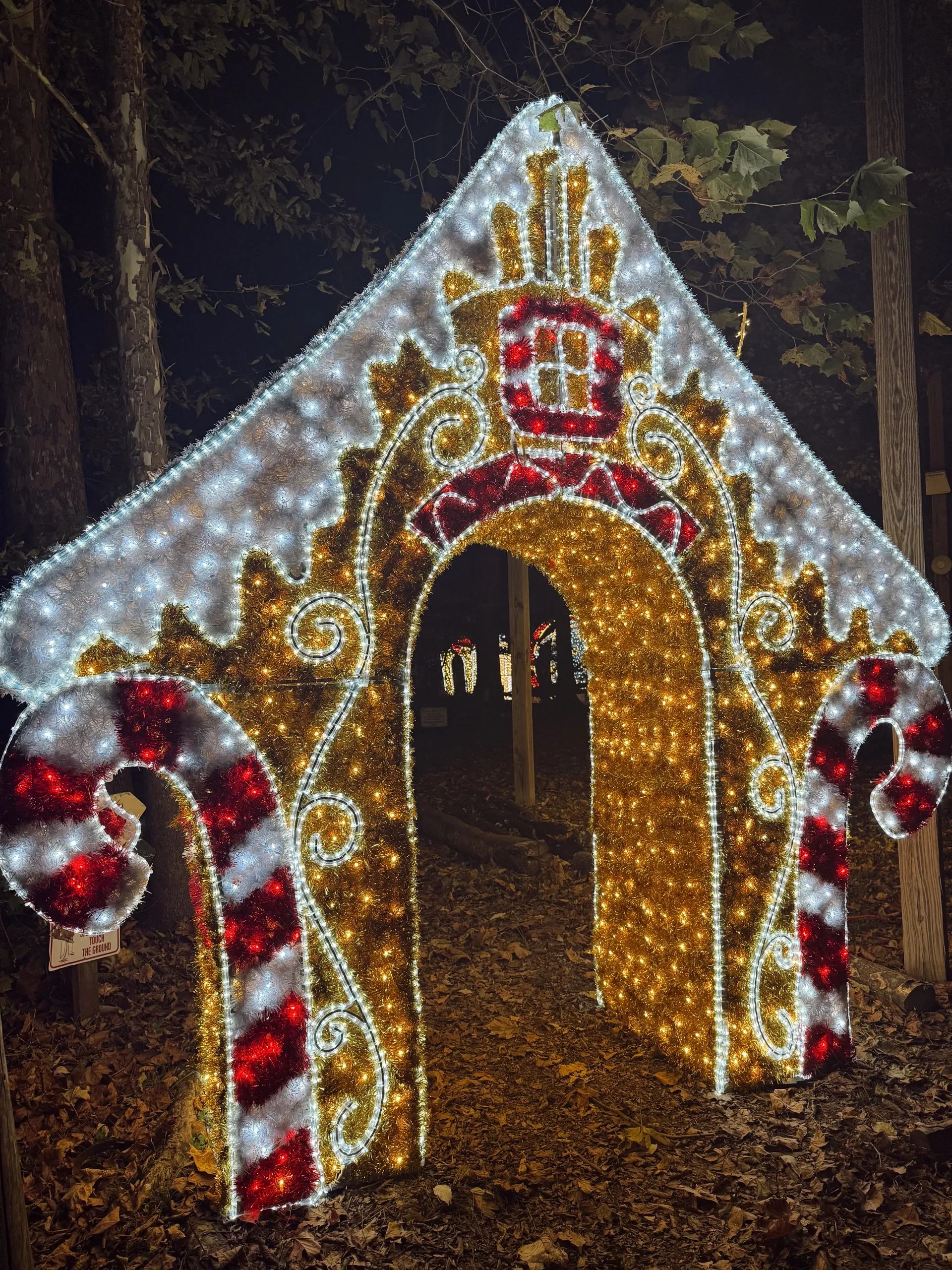 This evening stroll is lit with bright trees, winter, summer, and holiday themed displays, and a glowing Aerial Adventure Park.